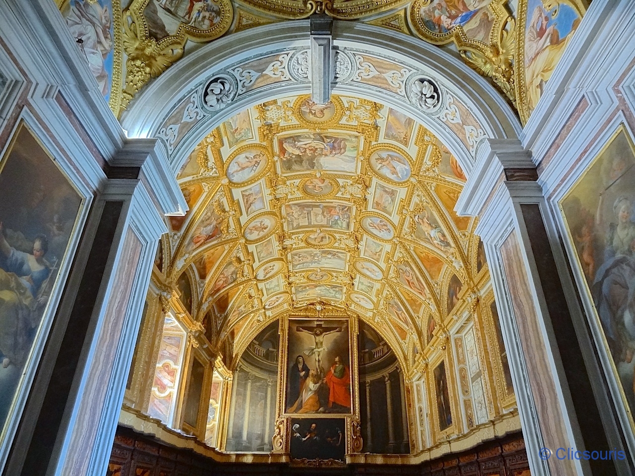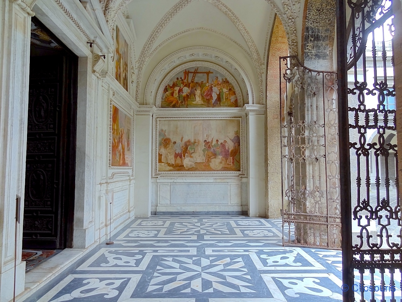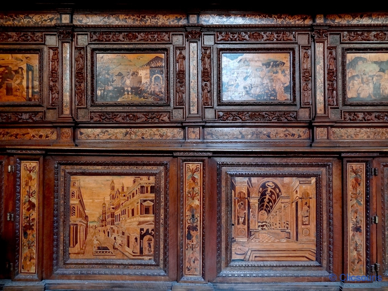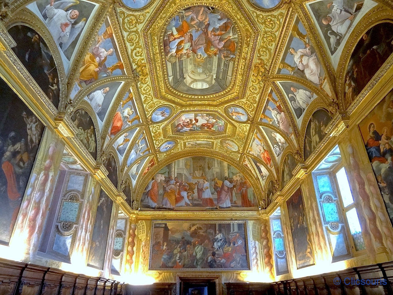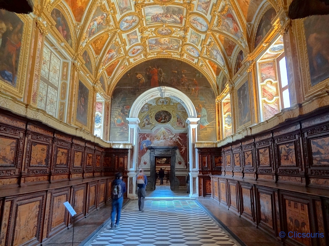Je me suis régalée à arpenter les salles qui l’entourent ! Toutes sont ornées de superbes fresques, et mention spéciale à la sacristie, avec ses armoires de marqueterie de bois très finement sculpté ! J’ai vraiment aimé.