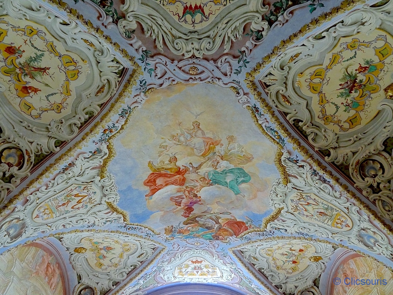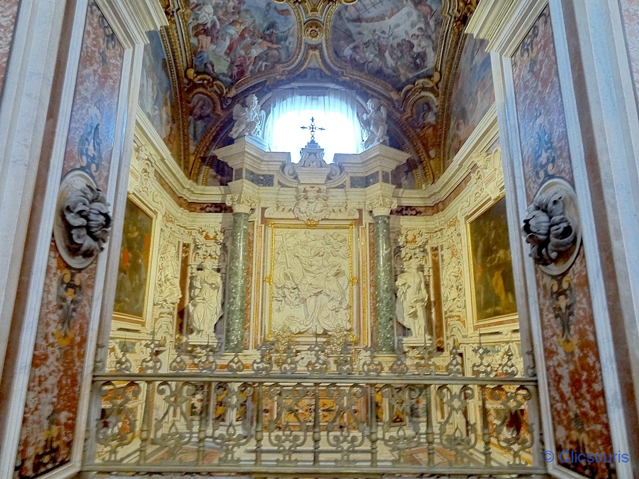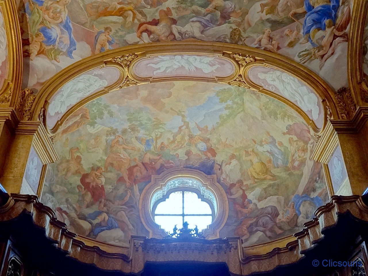 Nous découvrons donc la superbe église baroque avec sa débauche de marbre, angelots, fresques… Les fans du genre se régaleront !