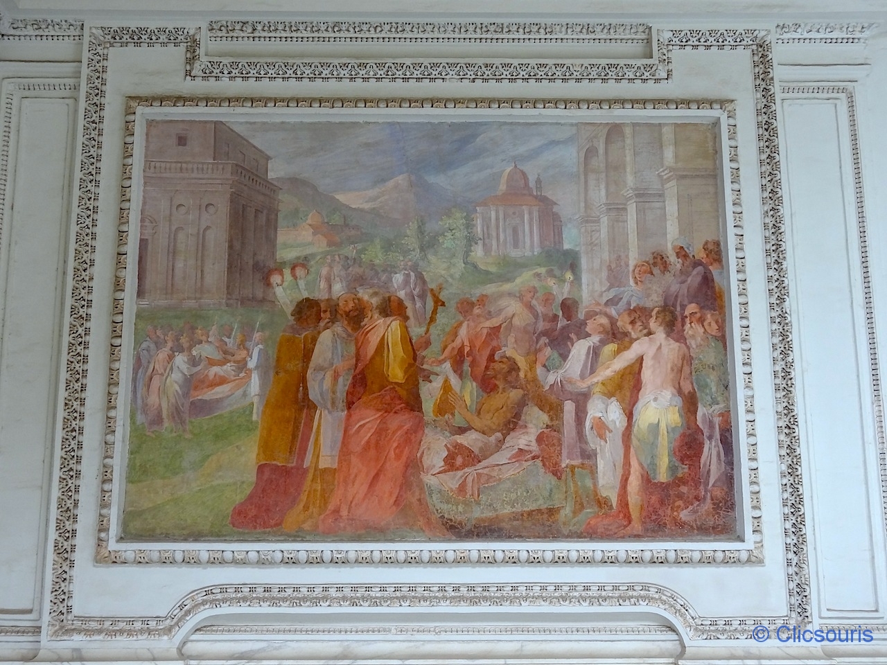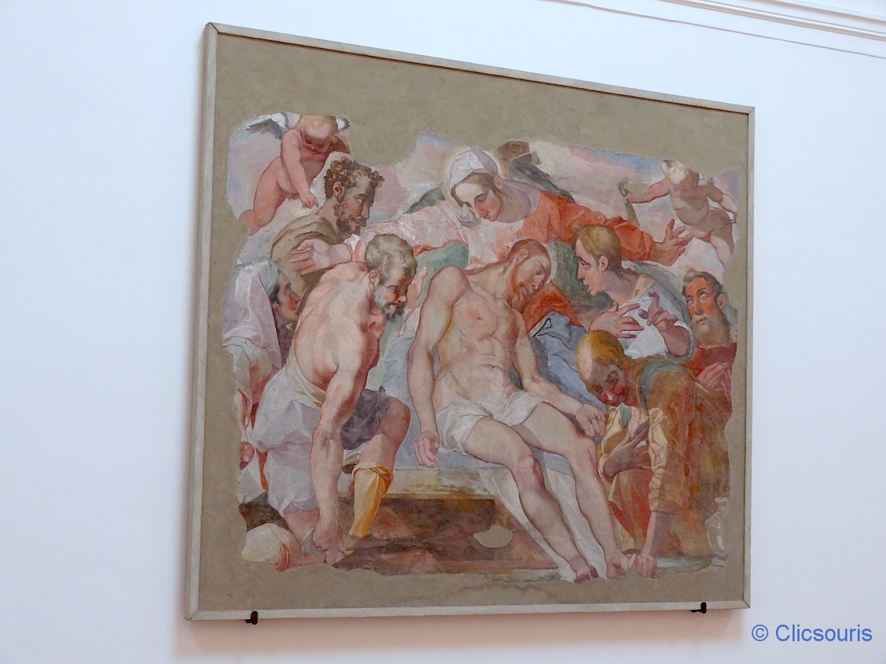 Difficile de le voir en entier, les salles étant fermées à tour de rôle selon le jour et l’heure par manque de personnel (hum, combien de chômeurs déjà en Campanie ?).