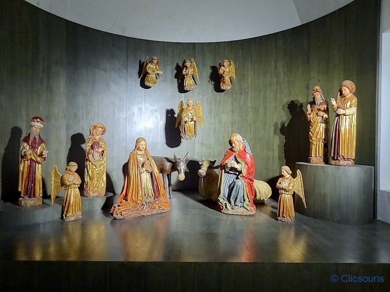 Après quelques beaux carrosses, une autre petite section propose quelques tableaux d’époque médiévale ou début Renaissance, essentiellement religieuse, mais également quelques statues dont une réalisée par le père du Bernin.