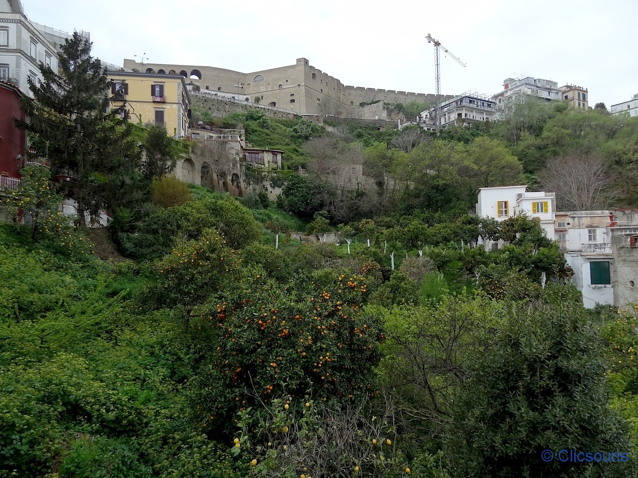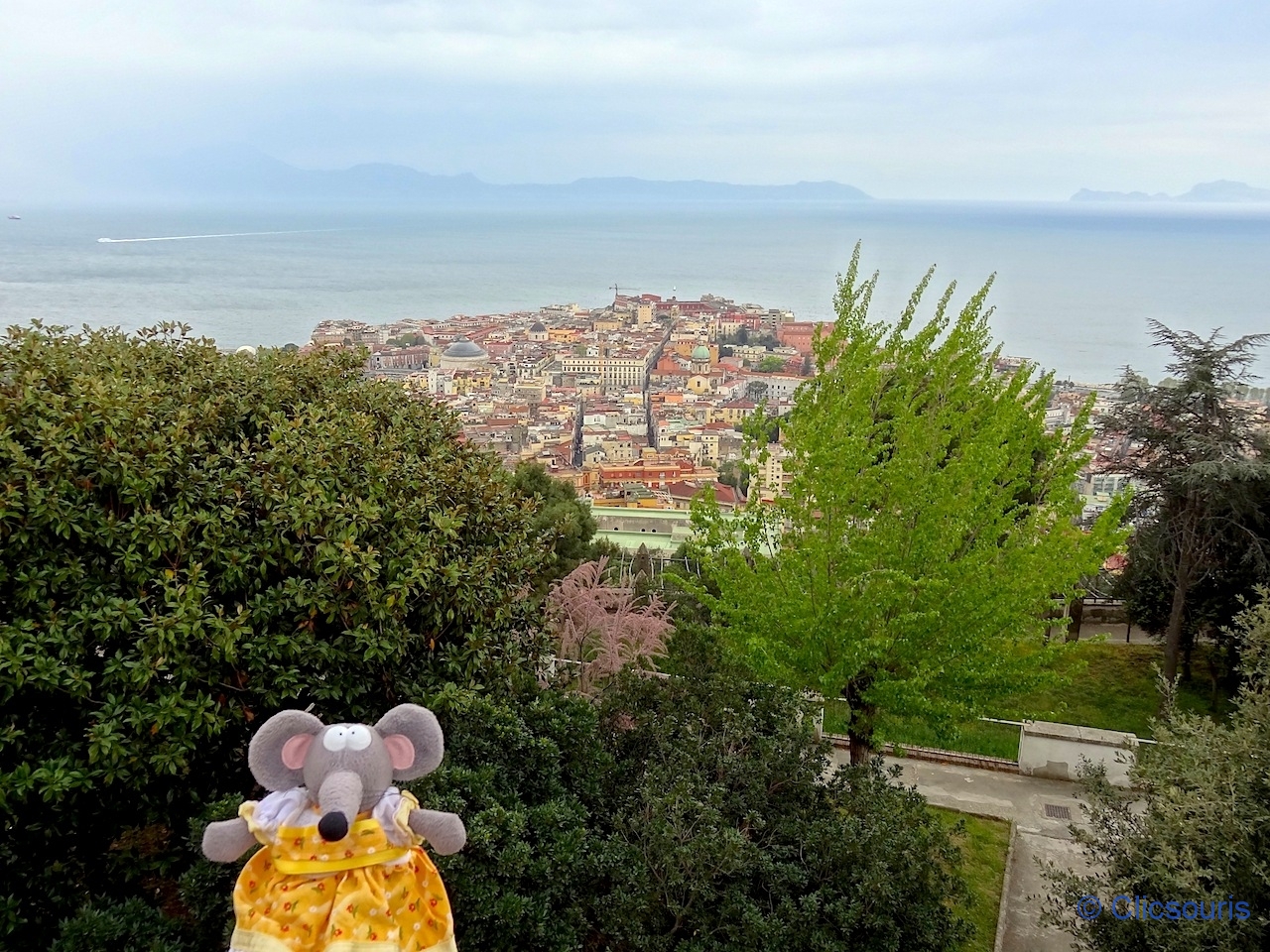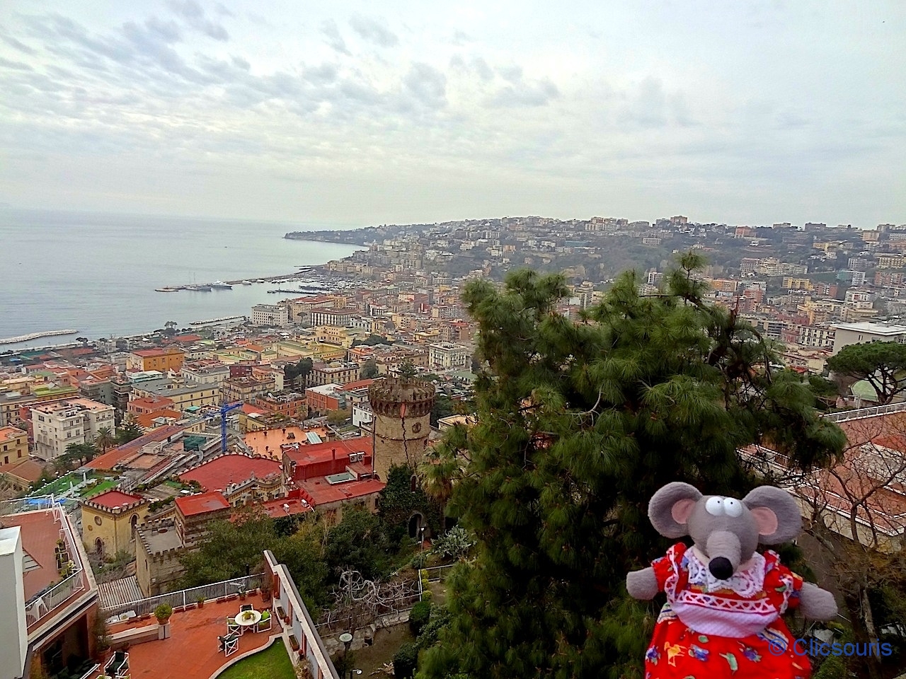 Bon, cela ressemble bien sûr à ce qu’on voit depuis la Chartreuse, mais ici c’est gratuit, et nous pouvons voir le quartier de Chiaia et le bord de mer de façon plus rapprochée.
