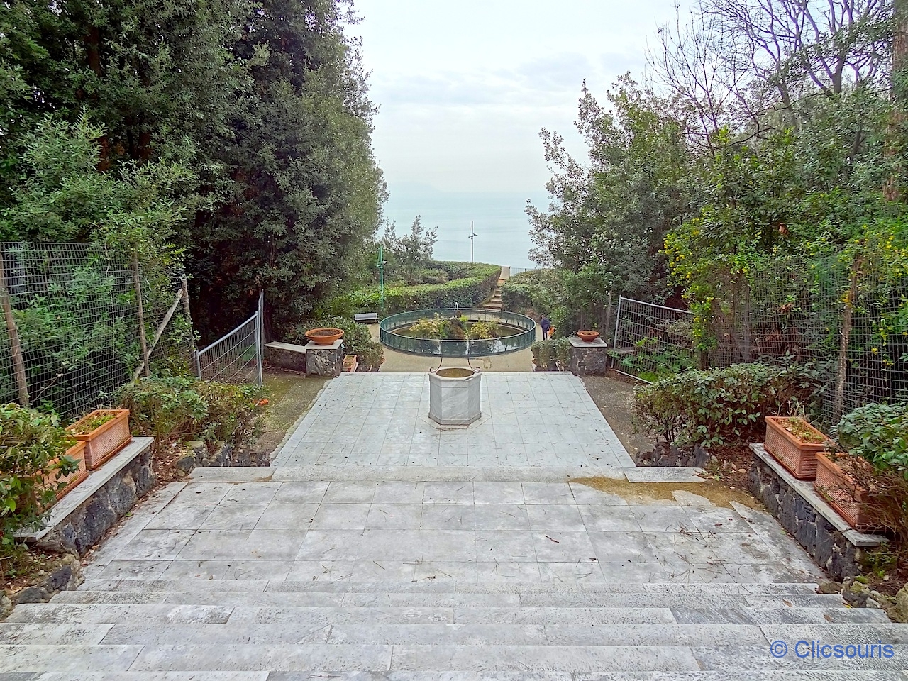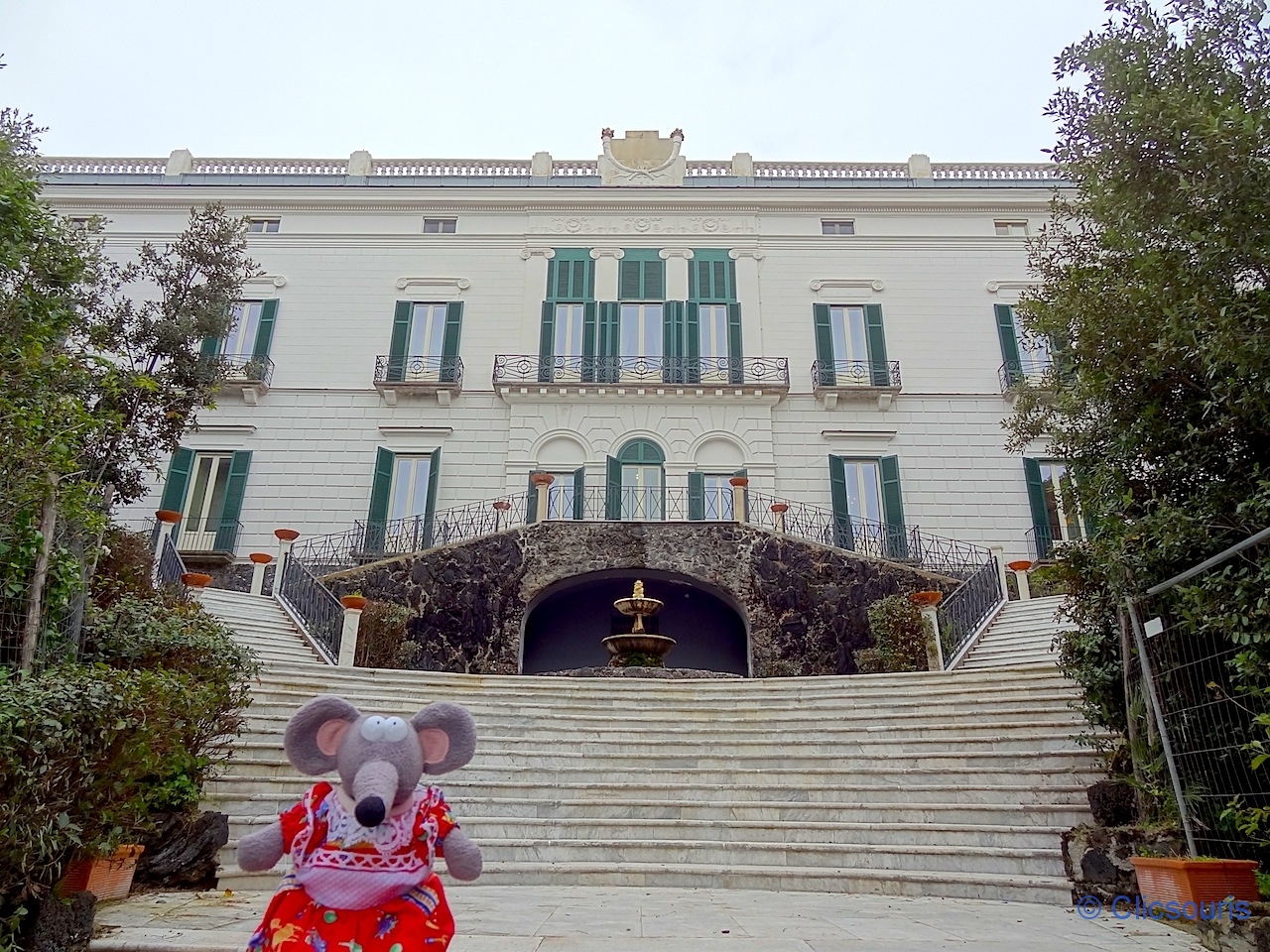 Des jardins en contrebas permettent de se promener mais vu la météo, nous avons passé notre tour. Super spot selfie pour la belle souris que je suis ! 🙂