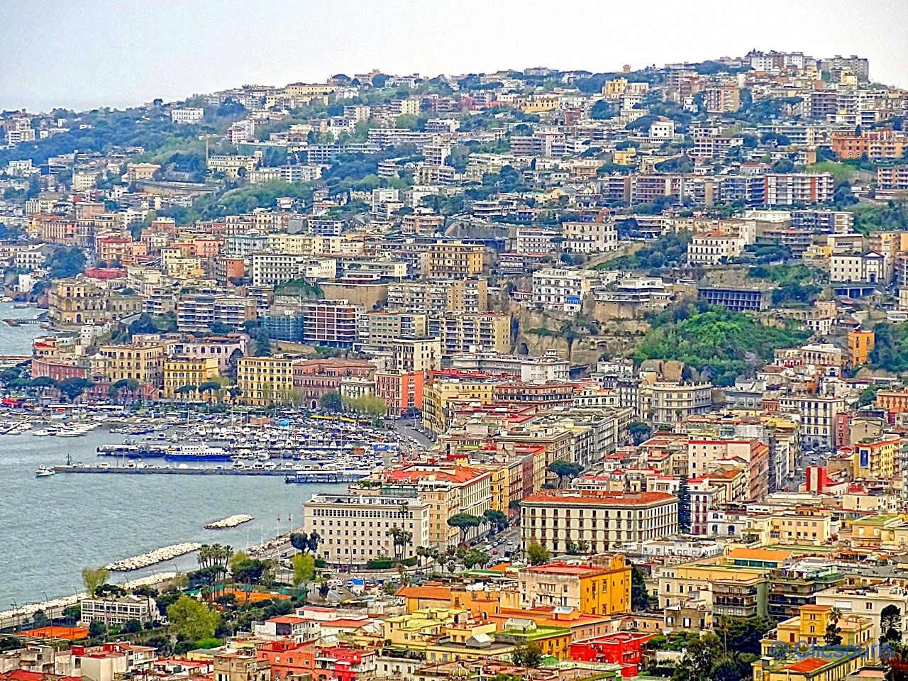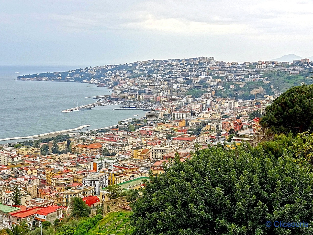 C’est un des plus beaux panoramas de la ville et de sa baie, avec celui de Mergellina ! Au loin, on aperçoit d’ailleurs le port de Mergellina et les collines du Posilipo. Magnifique !